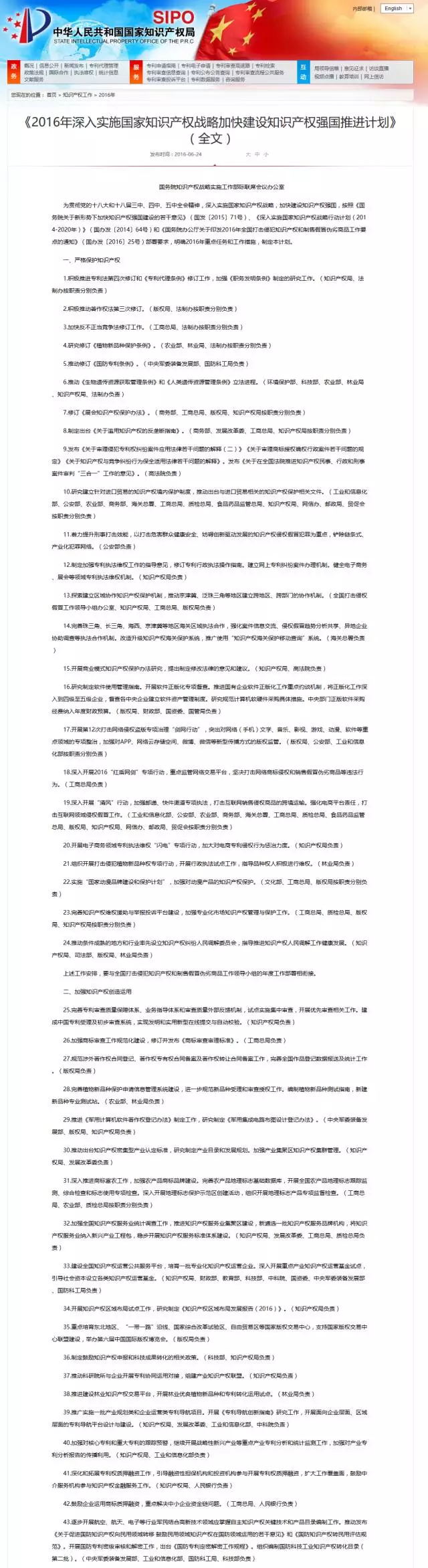 《2016年深入实施国家知识产权战略加快建设知识产权强国推进计划》内容节选