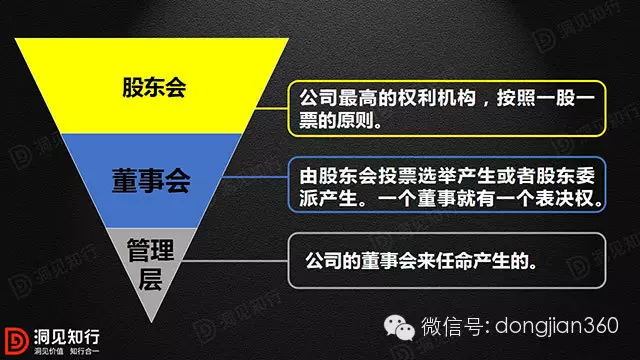 大家都知道公司的管理层就是CEO,CFO,CTO,公司的管理层又是由公司的董事会来任命产生的,在一定程度上控制了公司的董事会的话,那对公司管理层就具有了发言权和甚至决定权。在公司的整个治理结构里面,最核心的是上面两层,是公司的股东会和董事会。