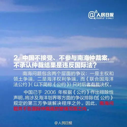 对于仲裁结果,中国立场一致鲜明而坚定:不接受,不承认,不执行。
