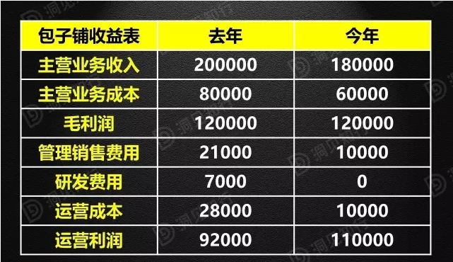 主营业务成本和运营成本都降下来了,但大家也看出毛病了吧。人家CEO知道我们股东喜欢看现金流了,聪明。一方面买了便宜的菜,把「主营业务成本」降下来了,另一方面砍掉了「管理费用」,把服务员都开除了,而且还停止了新品种包子的研发,砍掉了「研发费用」。结果,利润是比去年多了,但是营业额其实下降了。