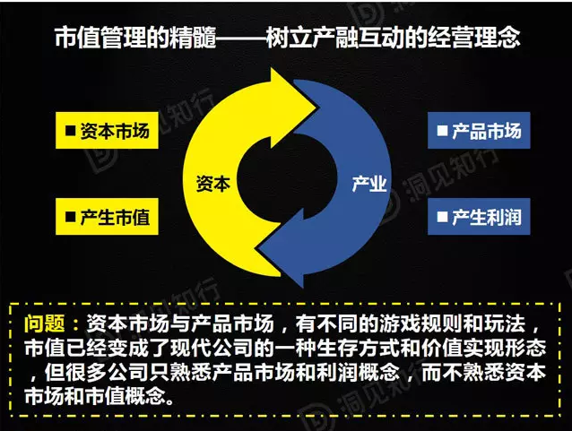 洞见资本研究院认为新三板企业市值管理核心是产融结合,产业层面和资本层面结合起来,“产业经营+资本经营”实现产融互动,爆发出的能量就是我们所说的市值管理的能量。
