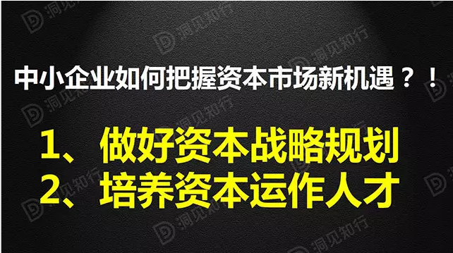 未来中小企业想要发展壮大,一定离不开资本市场哺育和支持。对企业来讲,如何有效的对接资本市场把握机遇,洞见资本研究院认为有两个核心工作:一要做好资本战略规划,二是要培养资本运作人才!
